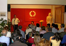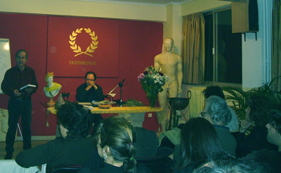 2. Θεωρούμε τον άνθρωπο ως μία μη διαπραγματεύσιμη αυταξία, ως μία ιερή μοναδικότητα πολύ πέραν ενός απλού αθροίσματος προβολών ρόλων και σχέσεων, εμπνεόμαστε από τα ιδανικά του Ανθρωπισμού, όπως αυτά έχουν κατανοηθεί και διατυπωθεί από τους Έλληνες φιλοσόφους, από την διανόηση της εποχής των Αντωνίνων και τους στοχαστές του Ευρωπαϊκού Διαφωτισμού. 3. Αναγνωρίζουμε την μη διαπραγματεύσιμη ιερότητα του φυσικού Κόσμου και όλων των μορφών ζωής, σύμφωνα με την προσέγγιση της πολυθεϊστικής Εθνικής Ελληνικής Θρησκείας, καταφάσκουμε την ζωή σε όλα τα επίπεδά της και θεωρούμε αντιπάλους μας όλα όσα υποβιβάζουν αυτή την ιερότητα ή επιχειρούν να υποτάξουν την πλήθυνση και την πολυμορφία σε αυθαίρετες ενοποιήσεις και ομογενοποιήσεις. 4. Δίνουμε προτεραιότητα στο «εμείς» αντί στο «εγώ», στην συλλογική κουλτούρα αντί στην αποσπασματική ατομική δράση, στην αλληλεγγύη και την εκ των έσω ανάδειξη των αρίστων ανθρώπων μας. Θεωρούμε την ίδια στιγμή αυτονόητη την ετερότητα και την πολυφωνία, που, κατ’ εμάς, δεν απειλεί αλλ’ αντιθέτως ισχυροποιεί την αρμονία του όποιου συνόλου. 5. Τοποθετούμαστε ενάντια σε κάθε μορφή πολιτικής αυταρχίας, ολοκληρωτισμού και θεοκρατίας και τασσόμαστε υπέρ της απόλυτης αυτοθέσμισης και της πραγματικής Άμεσης Δημοκρατίας, που όπως απέδειξαν οι πρόγονοί μας που την εφηύραν δεν έχει τίποτε να κάνει με ισοπεδωτισμό, μαζικοποίηση και αχρειοκρατία. 6. Δεχόμαστε την διαφωνία όχι ως κάτι το ανεπιθύμητο που πρέπει να θεραπεύσουμε, να αντικρούσουμε, να καλύψουμε ή να αποφύγουμε, αλλά ως μία καλοδεχούμενη εκδήλωση της διαφορετικότητας των ανθρώπων. Δεχόμαστε την διαφορετικότητα ως κάτι το απολύτως αναγκαίο για την συλλογική μετάβαση σε ανώτερα πνευματικά επίπεδα, στα οποία πολύ δύσκολα μπορεί να φθάσει ένα μεμονωμένο άτομο. 7. Υπηρετούμε την λογικότητα και τον ελεύθερο στοχασμό, την άνευ εμποδίων μετάδοση των απόψεων και των πληροφοριών, την αποτόλμηση της έρευνας ακόμα και σε περιοχές που το σύγχρονο κατεστημένο μάς έχει αποστερήσει ως τάχα «απαγορευμένες», υπερασπιζόμαστε το δικαίωμα όλων των απόψεων να ακούγονται, εκτός από εκείνες που οι ίδιες δεν αναγνωρίζουν το ίδιο δικαίωμα σε άλλους, εκτός δηλαδή από ιδέες που προπαγανδίζουν ρατσισμό, οργανωμένα συστήματα ανελευθερίας και κάθε είδους μισαλλοδοξία. ![]() ο Βλ. Ρασσιάς κατά την περίοδο 2005 - 2006: Πέμπτη 27 Οκτωβρίου 2005, ώρα 20.00, ομιλία του Βλάση Ρασσιά με θέμα «Η Ελληνική Κοσμοθέαση». Σάββατο 19 Νοεμβρίου, ώρα 20.00, κύκλος «Δι’ ολίγους κι εκλεκτούς» (ο Βλάσης Ρασσιάς ξεναγεί σε χώρους προηγμένων ιδεών): «Σκέψεις πάνω στον Φόβο και την Αφοβία». Σάββατο 10 Δεκεμβρίου, ώρα 20.00, κύκλος «Δι’ ολίγους κι εκλεκτούς» (ο Βλάσης Ρασσιάς ξεναγεί σε χώρους προηγμένων ιδεών): «25 Αρχές Ηθικής, του Αλαίν ντε Μπενουά». Πέμπτη 5